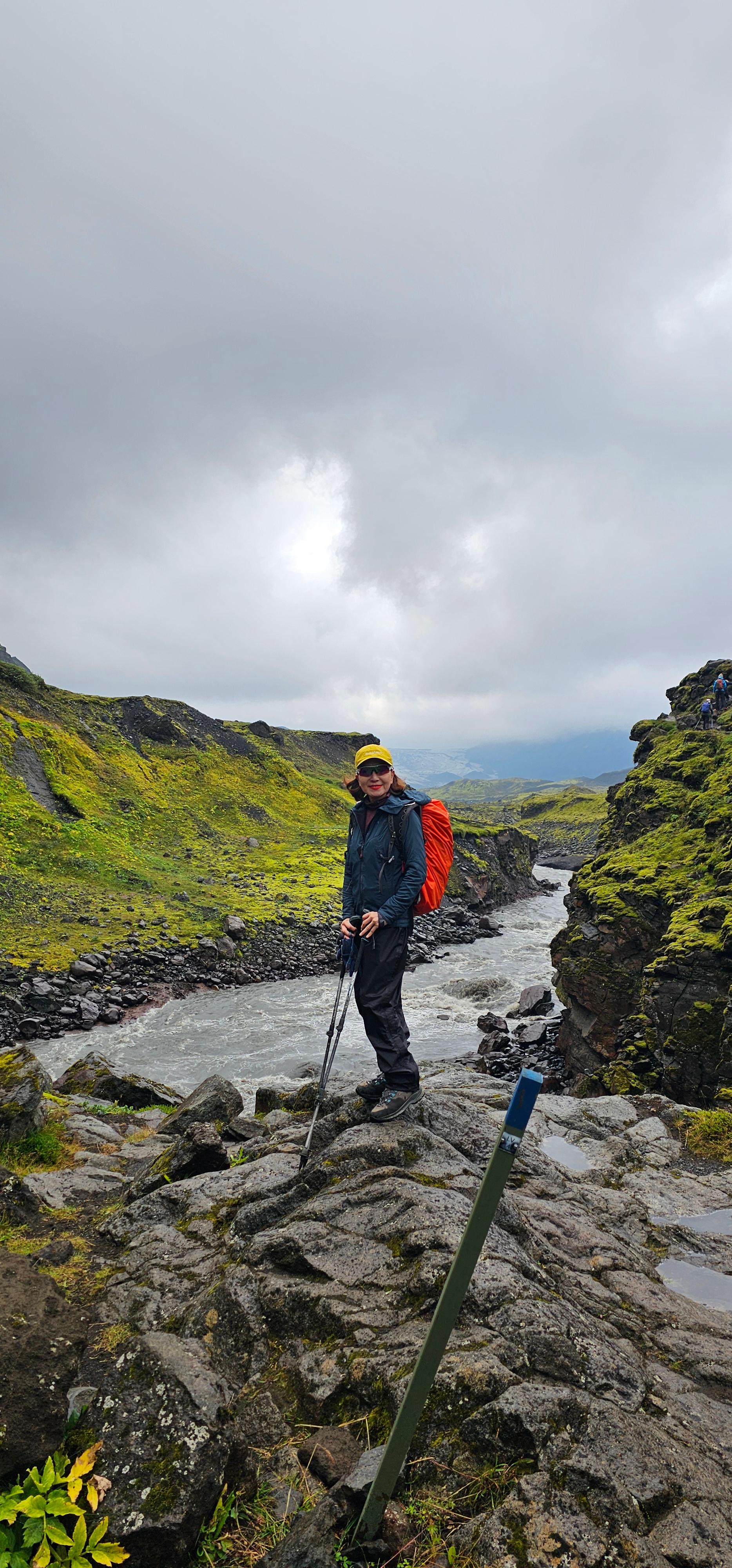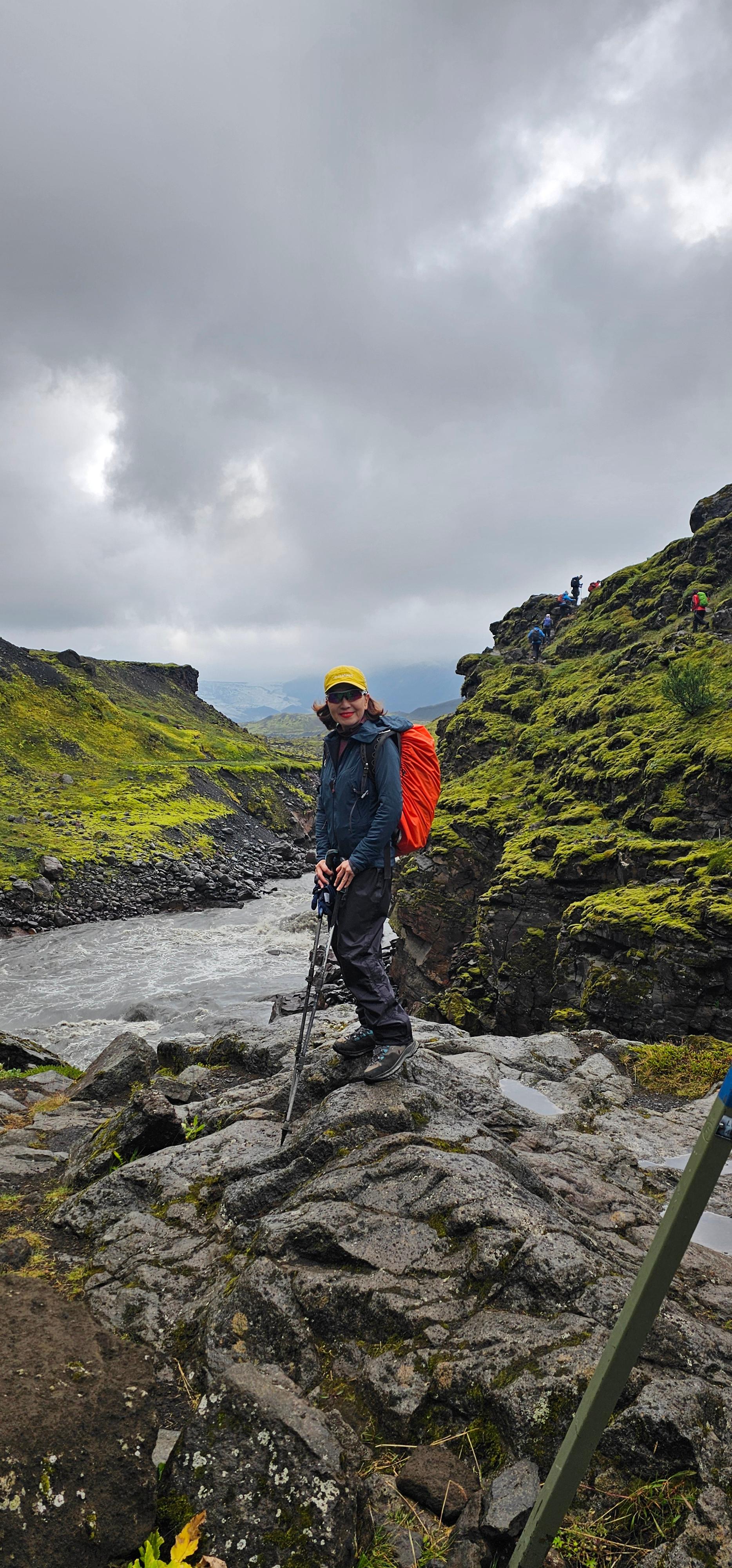 Emstrur 산장을 떠나기 전 ~ 이슬비가 내린다. 비옷을 입고 준비~ 이번 트레킹 중 우의 바지(고어텍스) 최고다. 방수에 추위까지 막아준다.