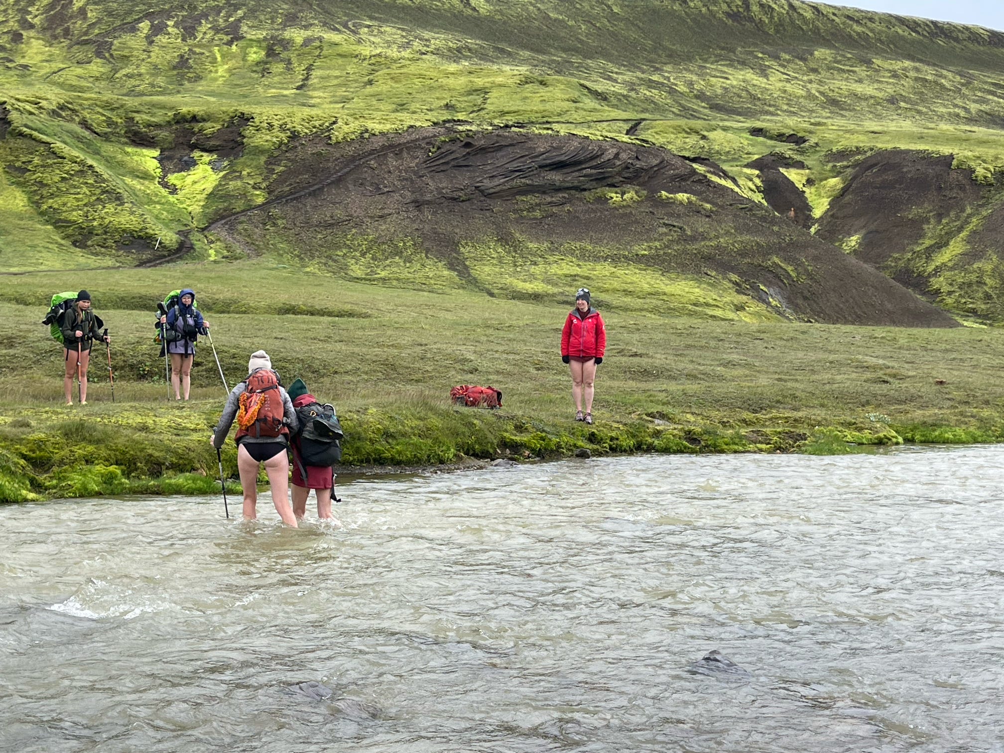 빙하계곡을 건널때 모두 바지를 벗고 건넌다. 빙하물이라서 엄청 차가움